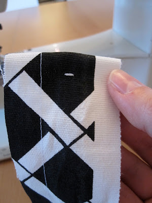 I have no idea what this is actually called-- but I call it a tack stitch. Basically-- I set my machine up to do a wide zig zag stitch and then set the length to zero. Instead of sewing a seam, my machine sews the same stitch over and over again in place. It looks something like this.